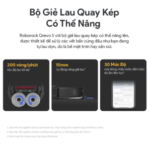 Robot hút bụi Roborock Q Revo S với hệ thống lau xoay kép độc đáo, có thể quay độc lập 360 độ với tốc độ ấn tượng lên tới 200 vòng/phút.